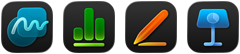 • يستطيع المشتركون في باقة Apple Creator Studio الوصول إلى مجموعة من التطبيقات الإبداعية المصممة لتعديل الفيديوهات والموسيقى والصور وابتكارها. يمكنك إبداع الفيديوهات في Final Cut Pro وMotion وCompressor، وإنتاج الموسيقى في Logic Pro وMainStage، وتعديل الصور أو الرسومات في Pixelmator Pro. ومع أن تطبيقات Keynote وPages وNumbers والمساحة الحرة تبقى مجانية للجميع، يوفر لك الاشتراك في Apple Creator Studio قوالب متميزة مع مكتبة صور ورسومات عالية الجودة ومرخصة للاستخدام الحر، فضلاً عن ميزات ذكاء قوية.