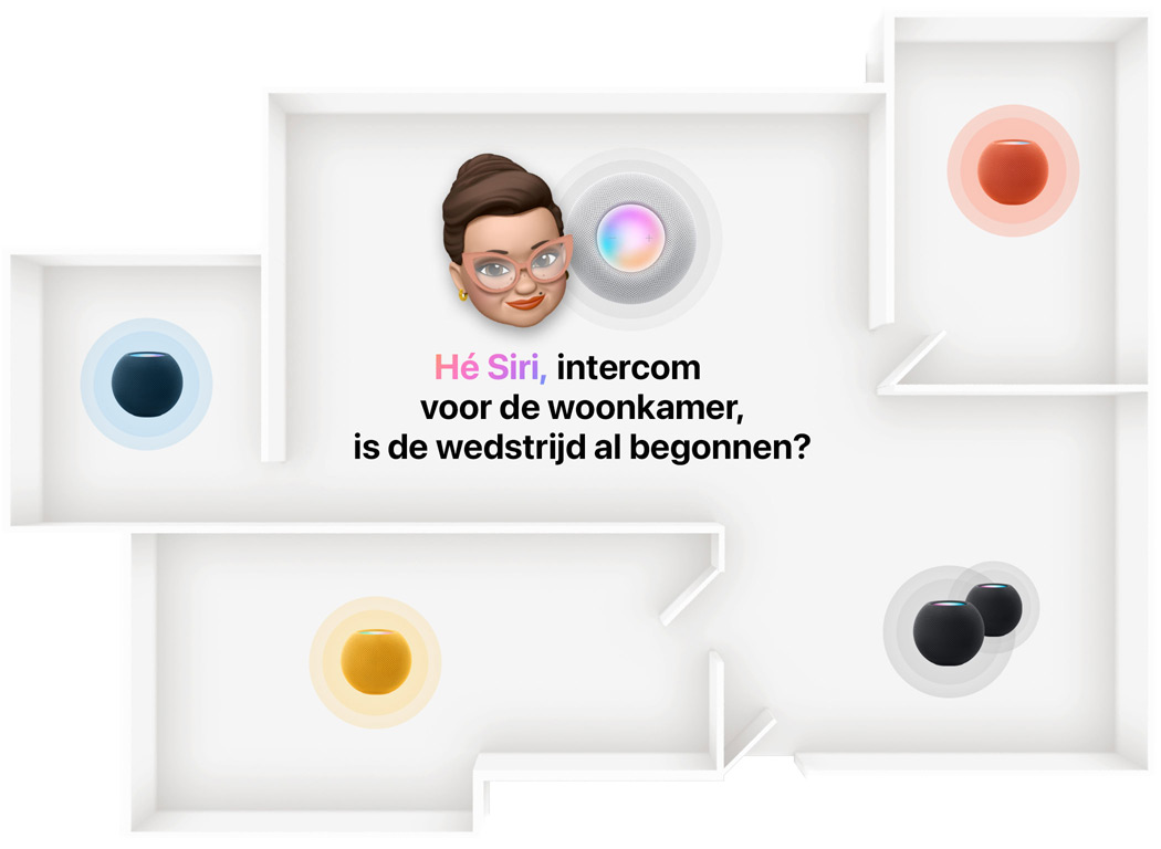 Heb je meerdere HomePod mini-speakers in huis, dan kun je via de intercomfeature met de rest van je gezin praten. Vraag Siri bijvoorbeeld om je bericht in het hele huis te laten klinken, of alleen in een bepaalde kamer. En antwoorden is voor de anderen al net zo simpel.