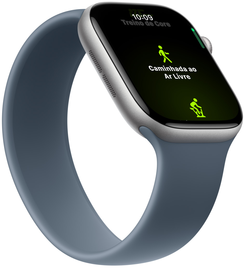 A apneia do sono é um distúrbio que causa episódios repetitivos de pausas no padrão da respiração durante o sono. Se não for tratada, pode aumentar o risco de hipertensão, diabetes tipo 2, problemas cardíacos, entre outros. O Apple Watch Series 11 pode monitorar alterações respiratórias ao longo do tempo e enviar notificações sobre a possibilidade de apneia do sono10.