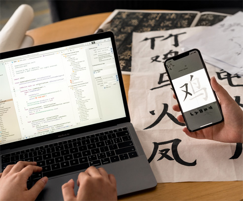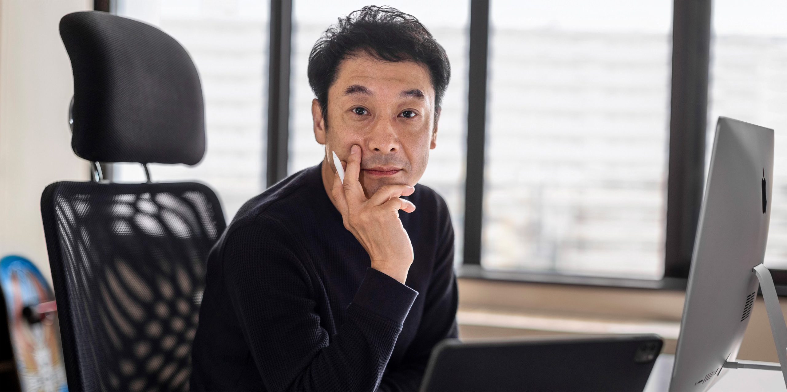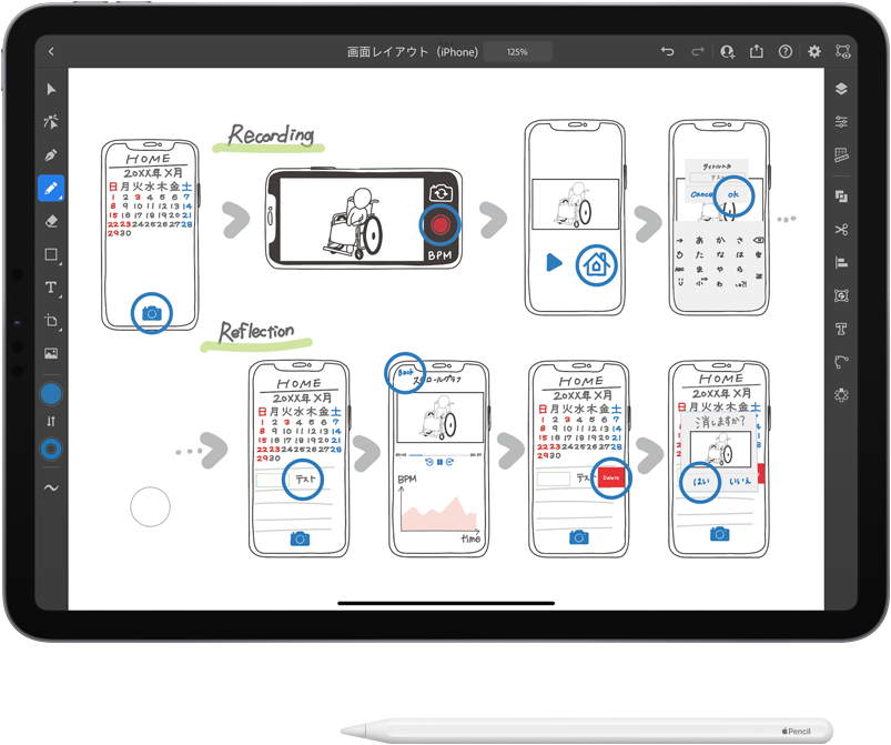 iPad Pro. O Dr. Iimura usa o iPad, o Apple Pencil e o Adobe Illustrator na sala de aula para esboçar ideias e ilustrar o funcionamento de um app de acessibilidade que ajuda professores a se comunicarem com estudantes não verbais.
