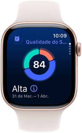 O Apple Watch ajusta o volume de ligações, notificações e Siri com base no ruído ao seu redor, ficando mais baixo em reuniões ou na biblioteca, por exemplo9.