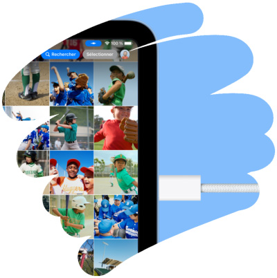 Multipliez les possibilités avec des essentiels pour iPad comme l’Apple Pencil et le Magic Keyboard Folio. Ajoutez une protection recto verso et un brin de couleur avec le Smart Folio. Et branchez moniteurs, disques durs, stations d’accueil et autres périphériques sur le port USB‑C2.