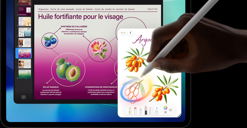 L’Apple Pencil redéfinit le dessin, la peinture, l’écriture manuscrite et la prise de notes avec une finesse et un naturel qui frôlent la magie : précision au pixel près, faible latence, sensibilité