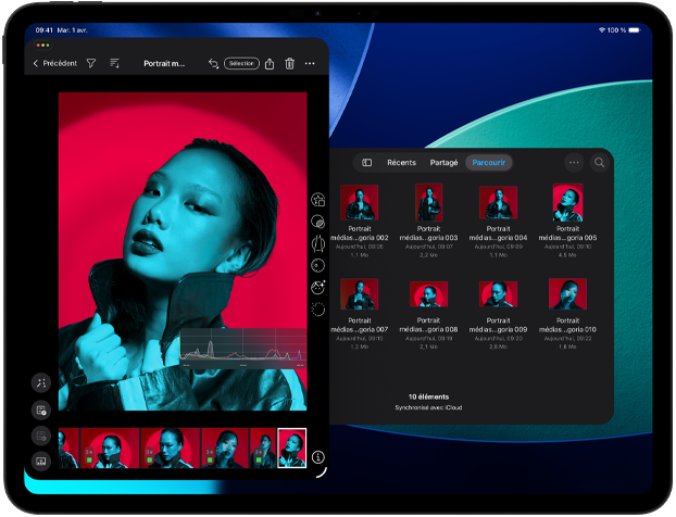 Productivité décuplée. Ouvrez plus de fenêtres en même temps, ajustez leur taille et leur disposition, et divisez l’écran de votre iPad en tiers ou en quarts.