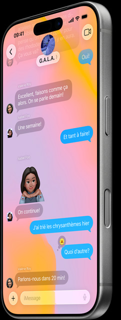 Écran pro immersif. Nos meilleurs écrans Super Retina XDR 6,3 et 6,9 po à ce jour5. Luminosité accrue. Antireflet amélioré. ProMotion jusqu’à 120 Hz.