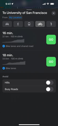 Choose a destination, and its interactive place card shows you everything you need at a glance. See basics like address, hours, website and phone number, along with details like price range, photo galleries, associated Guides, accepted payment types — even whether you can bring your dog. Launch Flyover or Look Around to get a sense of the location and surroundings. You can even quickly and securely rent a bike, pay for parking, order food and more with just a tap. And for places that use Business Chat, you can reach out and ask questions directly in Messages.