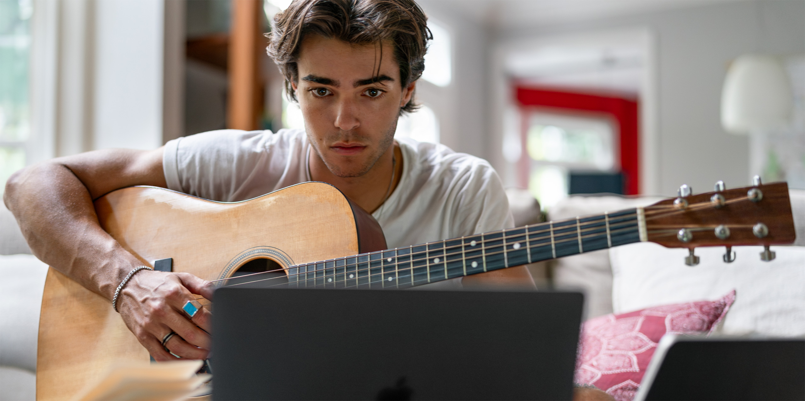 Max sagt, dass er als Sänger und Songwriter jederzeit damit rechnen muss, inspiriert zu werden. Er nutzt Sprachmemos auf dem iPhone, um Songideen direkt festzuhalten, und lädt sie dann auf den Mac, um sie in verschiedenen Arrangements zum Leben zu erwecken.