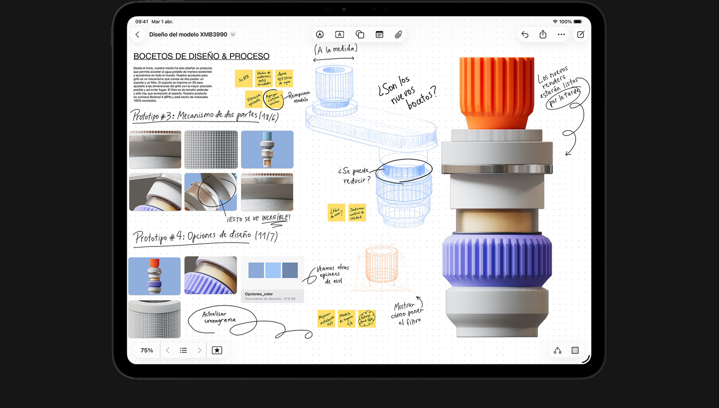 Con el Apple Pencil, la forma en que dibujas, pintas, escribes y tomas apuntes es intuitiva y precisa. Sentirás que usarlo es mágico gracias a su increíble precisión, baja latencia, sensibilidad a la inclinación y tecnología de detección de palma.