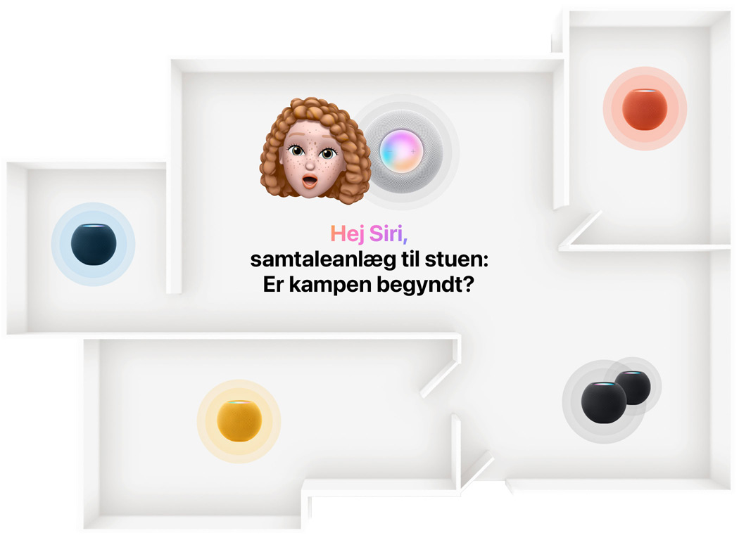 Det er nemmere end nogensinde at få imponerende lyd i hele hjemmet. Med fuld kontrol over hver enkelt HomePod mini kan du styre det hele, uanset hvor du er. HomePod mini virker også sammen med dine Apple-enheder, så du kan bruge funktioner som Samtaleanlæg bare ved hjælp af din stemme.