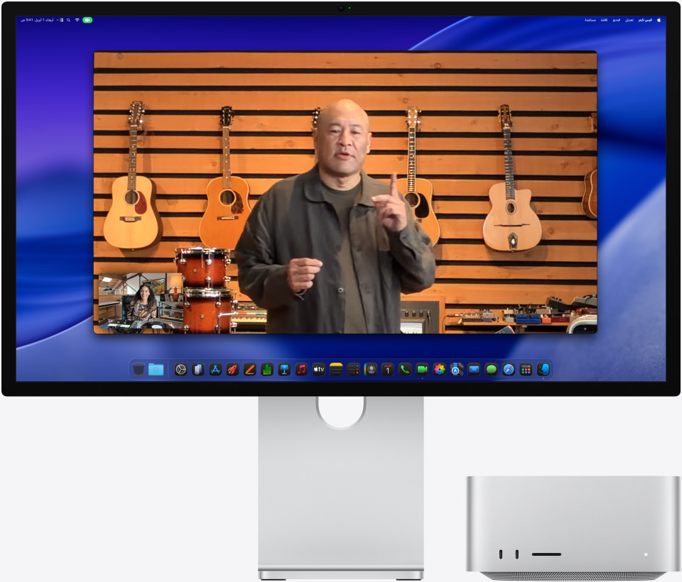 تتميز شاشة Studio Display XDR بكاميرا 12MP Center Stage مع جودة صور مذهلة وأداء استثنائي في الإضاءة الخافتة. ثبّت حضورك في قلب الصورة بشكل مثالي أثناء مكالمات الفيديو، سواء تحرّكتَ أم انضم إليك آخرون. ولن تضطر للابتعاد عن الشاشة، إذ يقدم لك العرض الرأسي لقطة علوية لمساحة عملك. أما وجهك فسينوّر مع الهالة التي تضفيها إضاءة الحواف من خلال إنشاء حلقة إضاءة افتراضية تحيط بأطراف الشاشة.