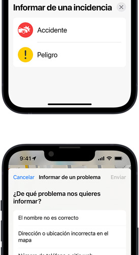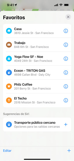 • Mapas está disponible en más de doscientas regiones de todo el mundo. Para saber qué prestaciones están disponibles en tu zona, visita la página Disponibilidad de las prestaciones.