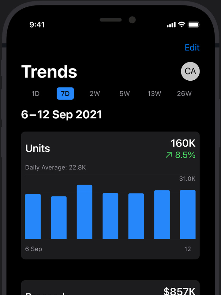 Each month, we analyze billions of anonymized data points that give developers valuable business insights through App Store Analytics.