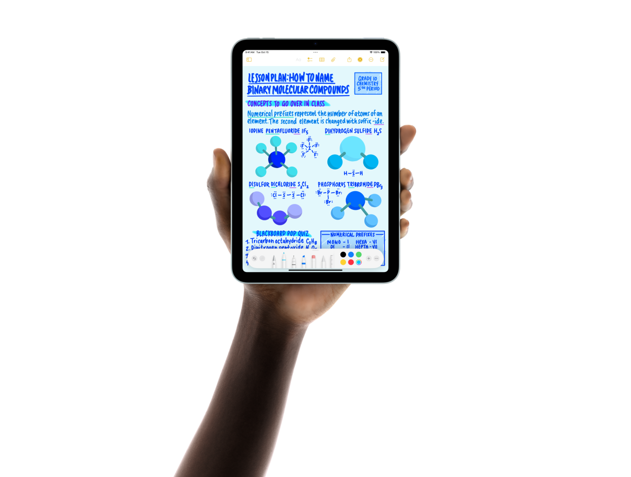 Apple Pencil Pro can sense when you squeeze it and brings up a palette, so you can quickly switch tools, line weights, and colors.