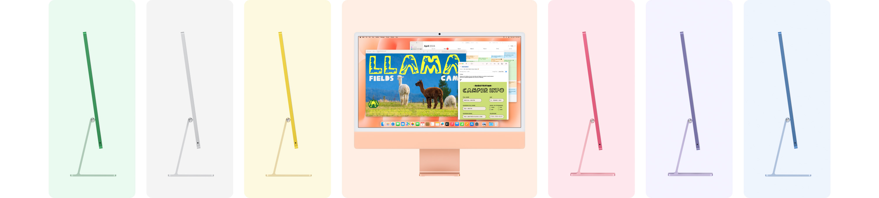 Kelola catatan inventaris, buat materi pemasaran, dan rencanakan masa depan bisnis dengan iMac.