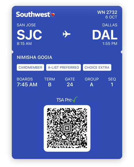 The Wallet app lives right on your iPhone. It’s where you securely keep your boarding passes, event tickets and more — all in one place. And it all works with iPhone or Apple Watch, so you can take less with you but always bring more.