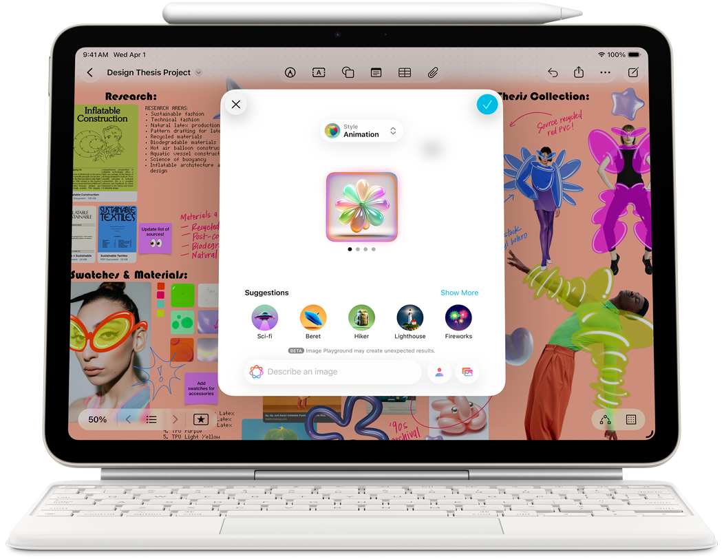 Apple Pencil sets the standard for how drawing, painting, handwriting, and note-taking should feel — intuitive, precise, and magical. All with pixel‑perfect precision, low latency, tilt sensitivity, and support for palm rejection. And Apple Pencil Pro adds even more capabilities to bring your ideas to life like never before.2