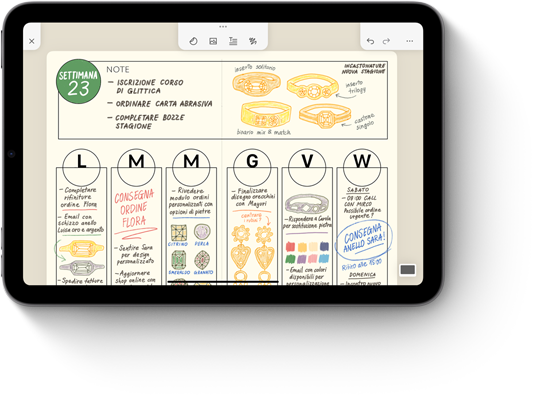 Disegna, dipingi, prendi appunti: Apple Pencil rende tutto più intuitivo, più facile, quasi magico.2 È precisa al pixel, ha una bassa latenza, cambia il tratto in base all’inclinazione. Mentre la usi puoi appoggiare la mano sullo schermo, proprio come faresti su un foglio. E ora Apple Pencil Pro ti aiuta a dare vita alle tue idee con funzioni ancora più evolute.