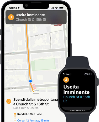 Goditi un’esperienza fluida e perfettamente integrata su tutti i dispositivi Apple che usi per muoverti. Il feedback aptico su Apple Watch ti guida nella direzione giusta, così non devi tirare fuori l’iPhone mentre cammini. Gli avvisi del calendario sul Mac ti segnalano quando è ora di smettere di lavorare e partire. Basta chiedere e HomePod ti dà l’itinerario che ti serve e lo invia al tuo iPhone mentre stai uscendo. E grazie alla sincronizzazione automatica di Mappe con Siri, Spotlight, Messaggi e Meteo, hai sempre le informazioni più adatte al momento giusto.