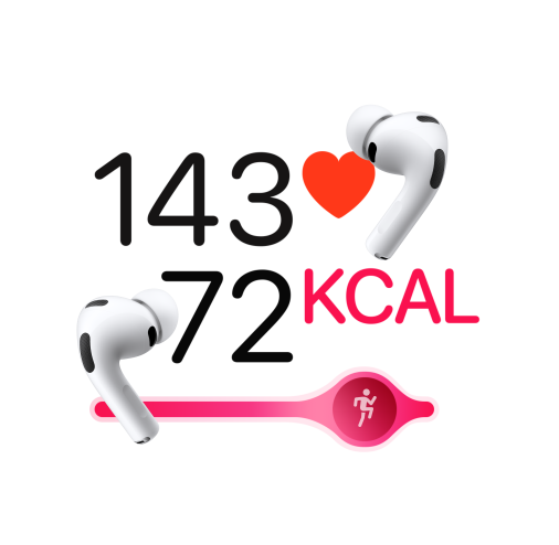 AirPods Pro 3を使って、リアルタイムで指標をチェック。AirPods Pro 3、Powerbeats Pro 2、またはBluetooth対応の心拍数センサーをつなげば、消費カロリーなどのパーソナルな情報をワークアウト中に確認できます。これらのデバイスに搭載された心拍数のトラッキング機能は、カロリー消費バーも表示。あなたの記録を、同じワークアウトを終えた人たちと比較できます1。