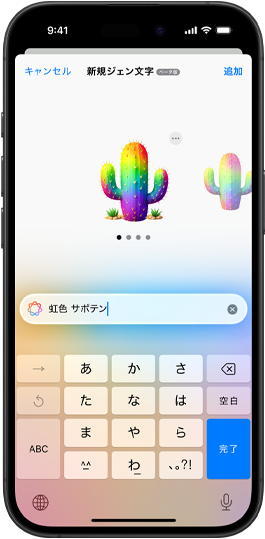 楽しいオリジナルの画像を、アプリ内からImage Playgroundを使って直接作れます。Image Playground専用のアプリも用意しました。アニメーション、イラスト、スケッチといったスタイルを試してみたり、新たに増えたChatGPTのスタイルを選んでみたり。画像マジックワンドを使って、ラフスケッチをもとに関連性の高い画像を生成してメモに加える。写真アプリでカスタマイズしたメモリームービーを作る。ジェン文字を使って友だちをインスピレーションにした画像を作ることもできます。
