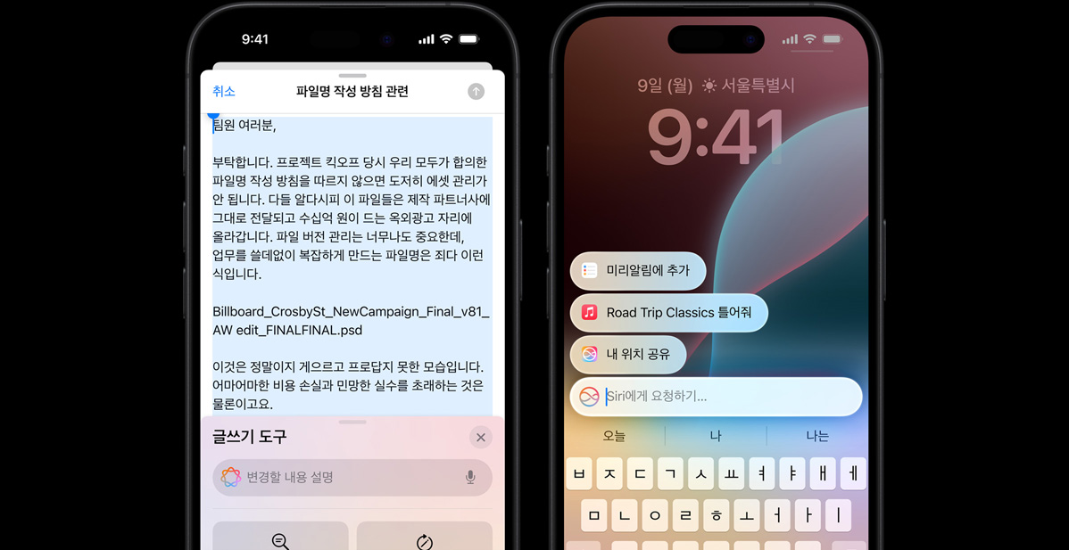 Apple Intelligence가 제공하는 역량을 통해 올해엔 Siri의 새 시대가 열립니다. 기본 탑재된 다양한 지능형 기능들로 더욱 유용해진 Siri와 함께라면 일상 속 많은 일을 가뿐히 해낼 수 있죠.*