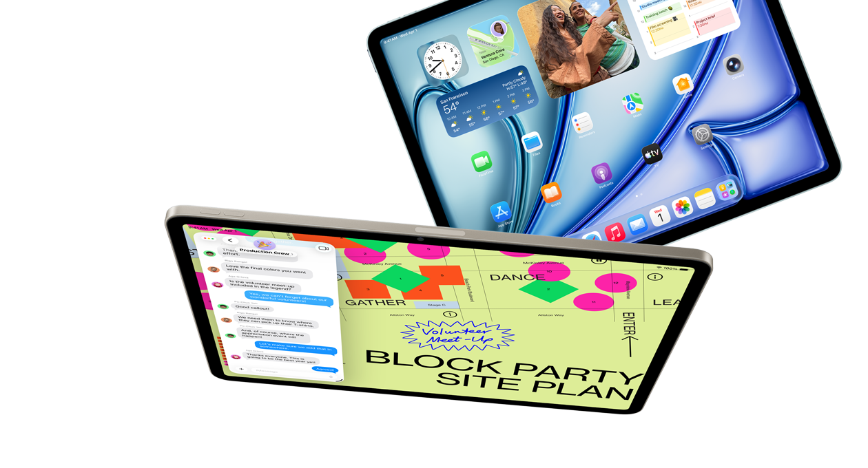 iPadOS 26 introduces Liquid Glass, a stunning new design with a vibrant look and game-changing enhancements that put iPad Air productivity on a new level. A reimagined, intuitive windowing system gives you greater power and flexibility than ever before. Run pro apps, play high-performance games, and take on creative projects of any size with a natural, touch-first experience.