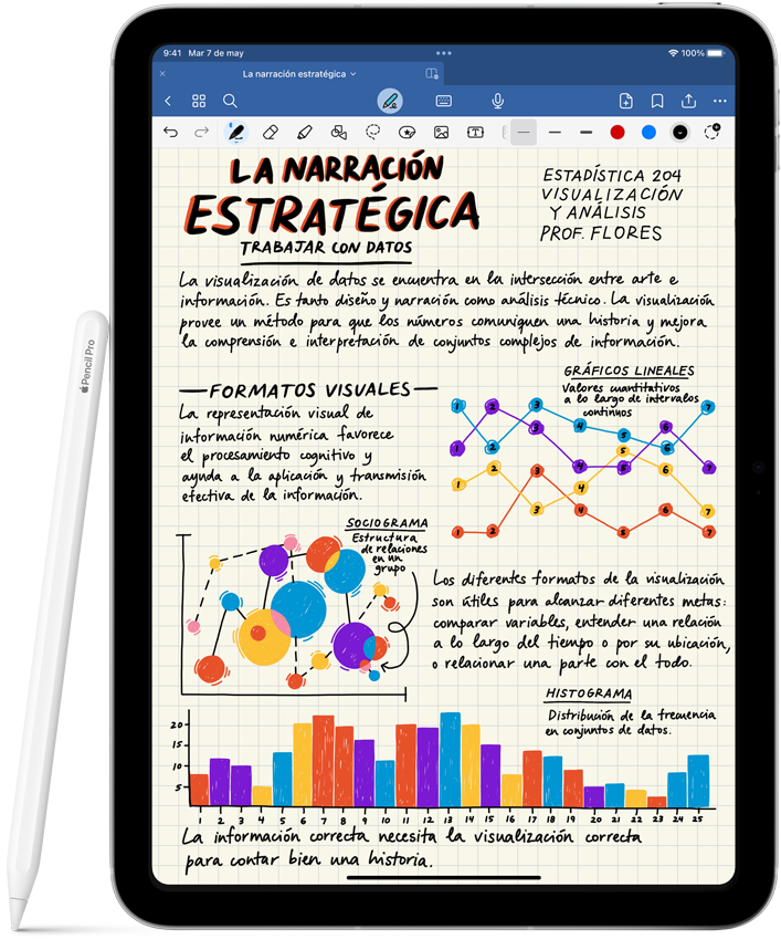 Con el Apple Pencil, la forma en que dibujas, escribes y haces anotaciones es intuitiva y precisa. Sentirás que es mágico gracias a su increíble precisión, baja latencia, sensibilidad a la inclinación y tecnología de detección de palma. Es muy fácil de usar y siempre está listo para darle vida a tus ideas.