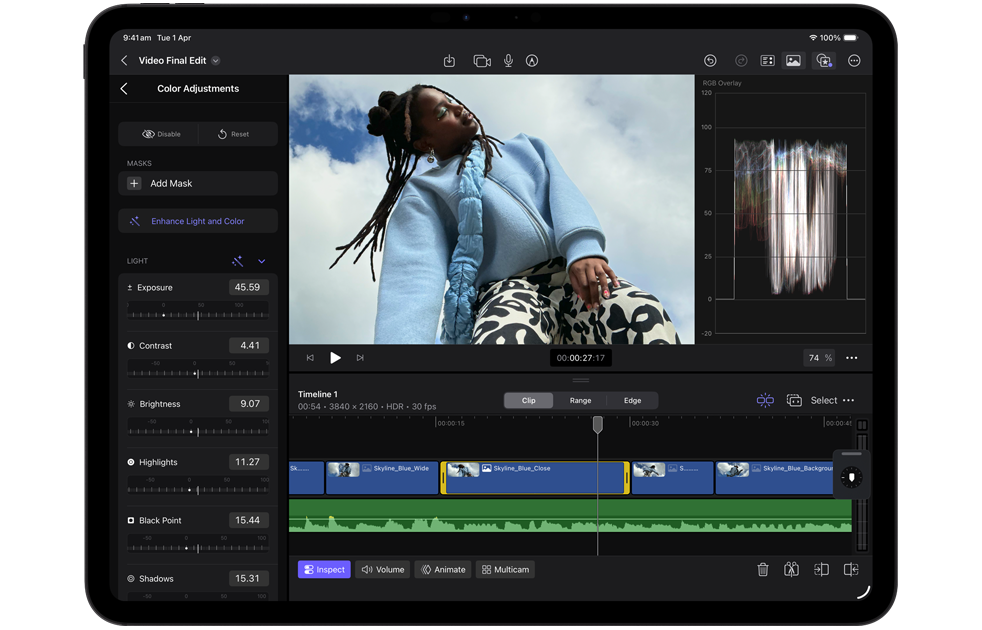 Shoot, edit and share all on one device with a pro camera system with LiDAR Scanner, studio-quality mics and four speakers. Capture 4K ProRes video, record a podcast and pick the right microphone for each app with the input chooser.