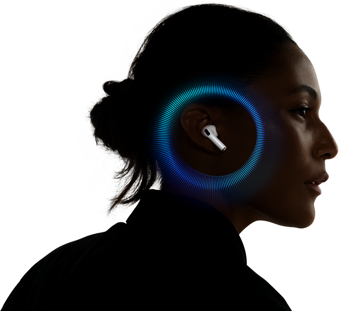 Technologia spersonalizowanego dźwięku przestrzennego wykorzystuje aparat TrueDepth w iPhonie do stworzenia osobistego profilu audio opartego na geometrii Twojej głowy. Głęboki, wciągający dźwięk będzie Ci idealnie pasować.
