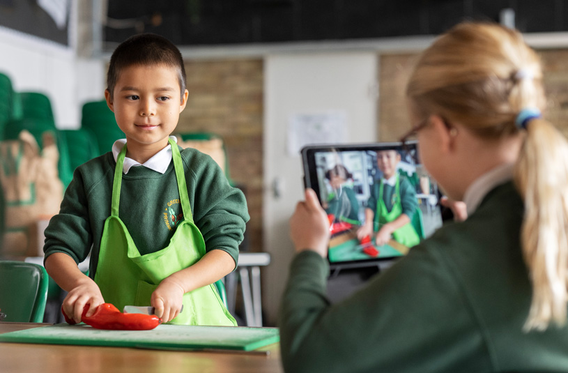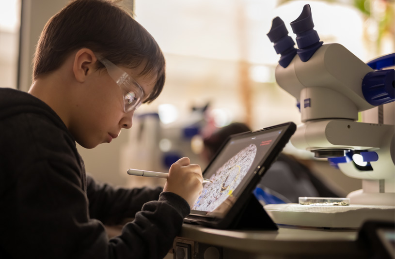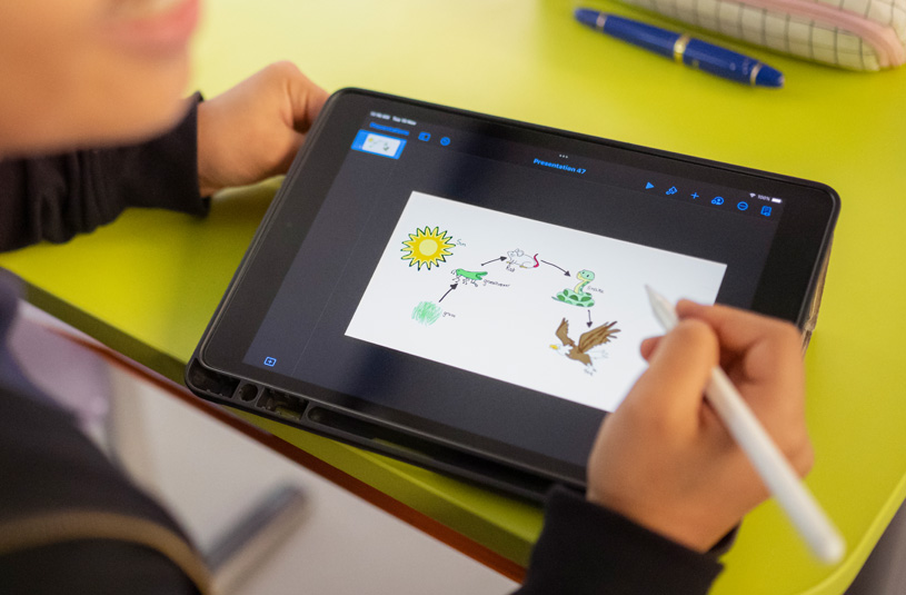Obecnie uczniowie z zapałem projektują tkaniny w apce Tayasui Sketches School. Śledzą fascynujący cykl życia roślin w szkolnym ogrodzie za pomocą aplikacji Aparat i Clips. A emocje odkrywają dzięki tworzeniu własnej muzyki w GarageBand.