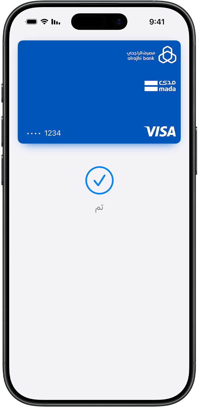 تعد Apple Pay أكثر أماناً من استخدام بطاقات الائتمان أو السحب أو بطاقات الدفع المسبق الفعلية. وهي تتطلب استخدام بصمة الوجه أو بصمة الإصبع أو رمز المرور الخاص بك لإتمام عمليات الشراء على iPhone أو Apple Watch أو Mac أو iPad. ولا تتم مشاركة رقم بطاقتك أو هويتك مع التجار، وكذلك لا تُحفظ أرقام بطاقتك الفعلية على جهازك أو على سيرفرات Apple.
