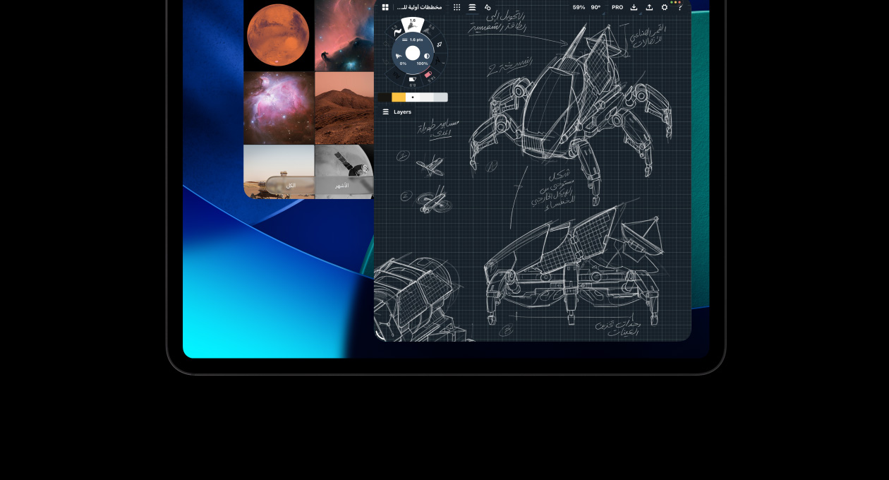 يقدم نظام iPadOS 26 تصميماً خلاباً مع Liquid Glass وتحسينات تقلب الموازين وترتقي بإنتاجية iPad Pro إلى مستوى جديد. كما يمنحك نظام نوافذ مبتكر وسهل الاستخدام قوة ومرونة أكبر من أي وقت مضى. شغّل التطبيقات الاحترافية، واغمر حواسك في الألعاب عالية الأداء، وترجم أفكارك الإبداعية مهما كبرت في تجربة بديهية تعتمد أساساً على اللمس.