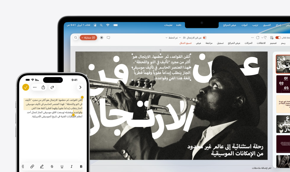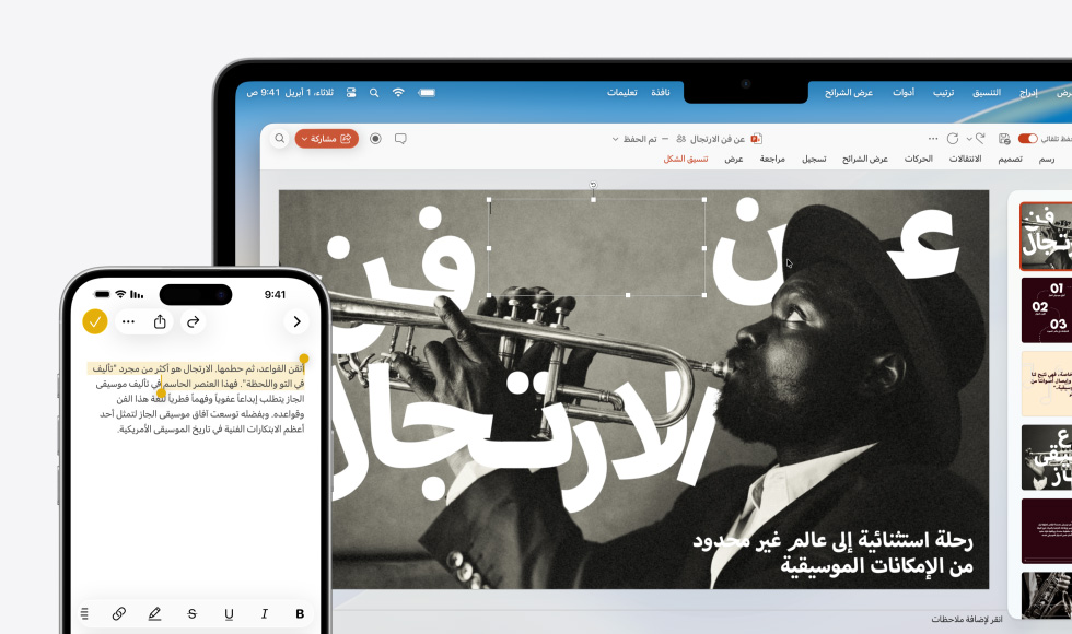 كل من Mac وiPhone مذهل لوحده. لكن معاً، قدراتهما عجيبة. تمكّنك ميزات الاستمرارية من التنقل بسلاسة بين الأجهزة لمشاركة الصور والملفات، وتسليم المهمات، وحتى التحكم في iPhone من Mac.