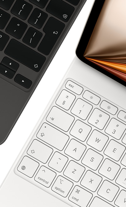 Magic Keyboard — available in black or white — is the perfect companion for iPad Air. It delivers an amazing typing experience and a trackpad for precision tasks in a sleek, portable design. The keyboard includes a 14‑key function row, a USB-C connector for pass‑through charging, and front and back protection for your iPad Air. The floating cantilever design smoothly adjusts to multiple viewing angles, and a large glass trackpad expands how you can work with iPadOS.2