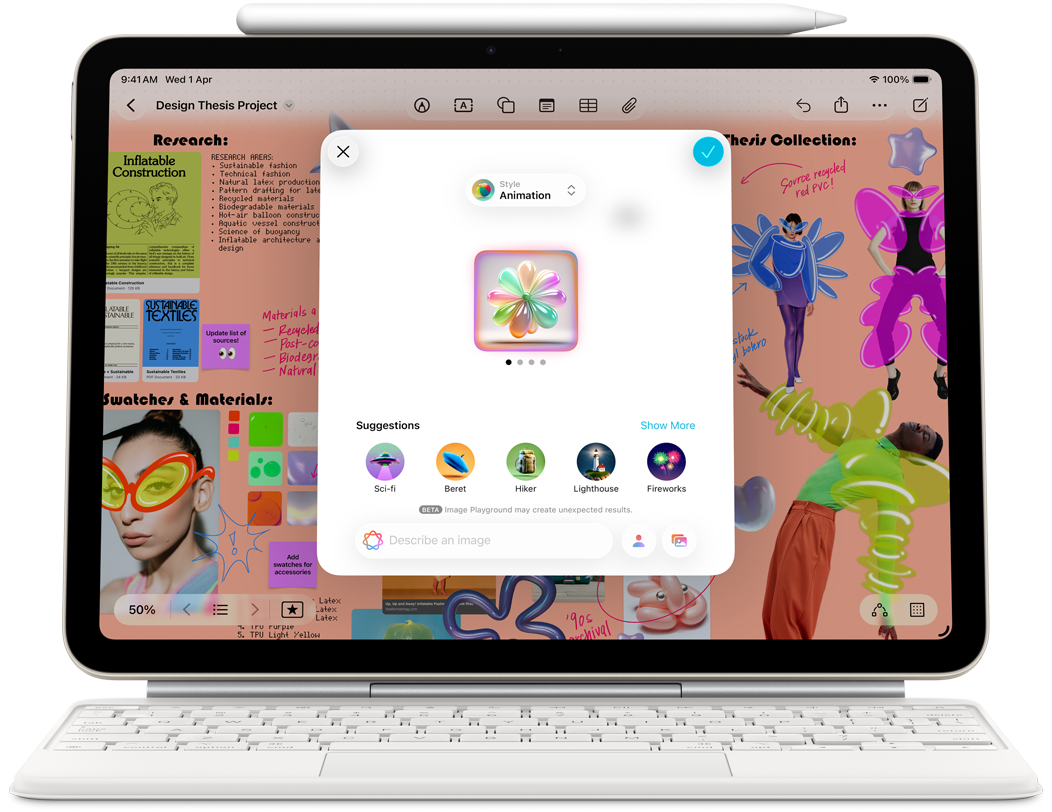 Apple Intelligence enables delightful ways to express yourself visually. Turn a rough sketch into a related image with Image Wand. And create new images based on descriptions, suggested concepts and even a person from your Photos library with Image Playground.