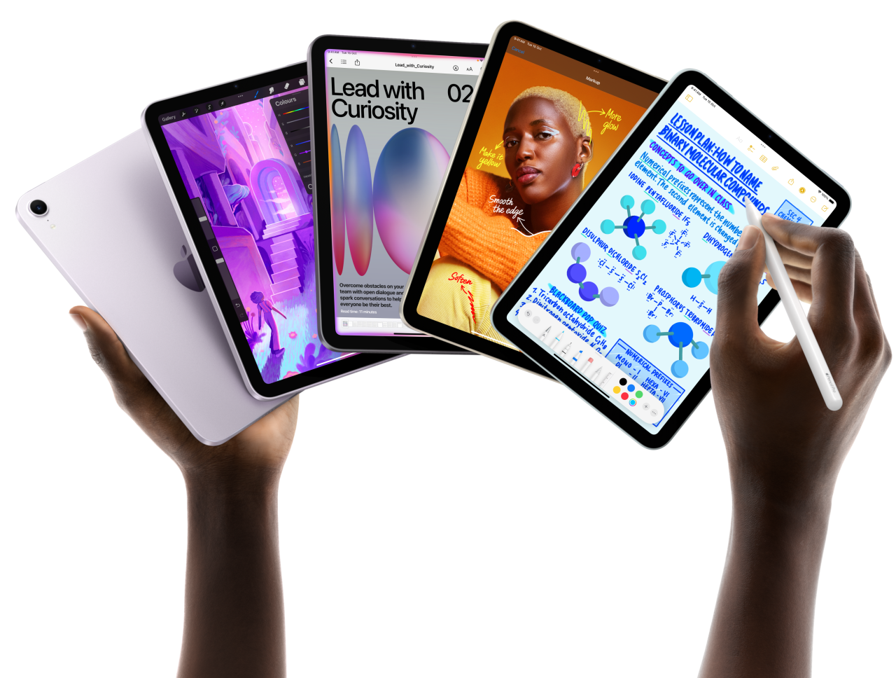 iPad mini has everything there is to love about iPad in a delightfully light, compact design. It features a 100 per cent recycled aluminium enclosure and stunning all‑screen design, and it goes anywhere you go — fitting perfectly into a backpack or purse.