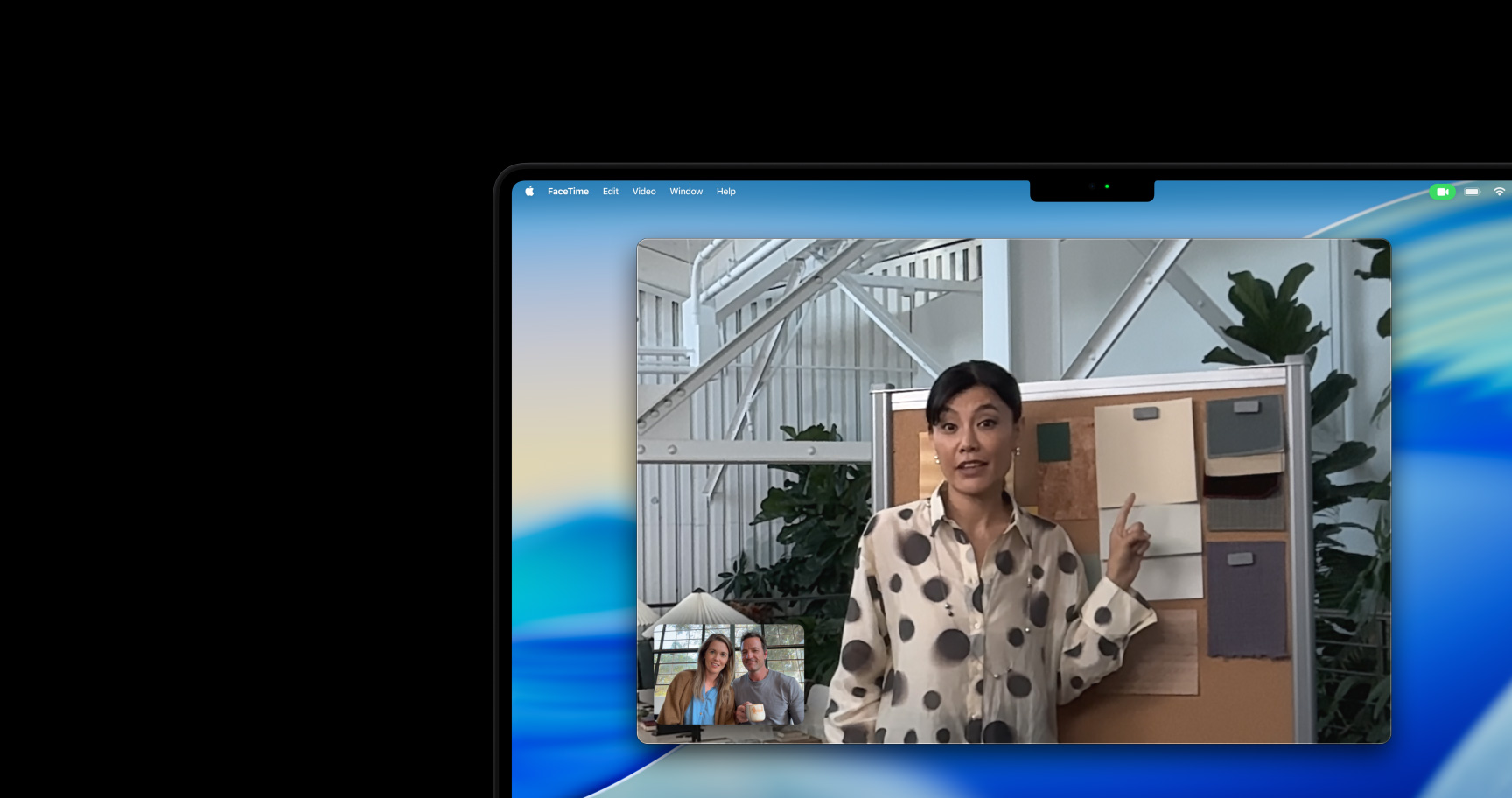 มุมมองด้านหน้าโต๊ะให้คุณแชร์พื้นที่ทำงานให้อีกฝ่ายเห็น ซึ่งเป็นการเพิ่มมิติใหม่ที่ช่วยให้วิดีโอคอลดูน่าสนใจยิ่งขึ้น