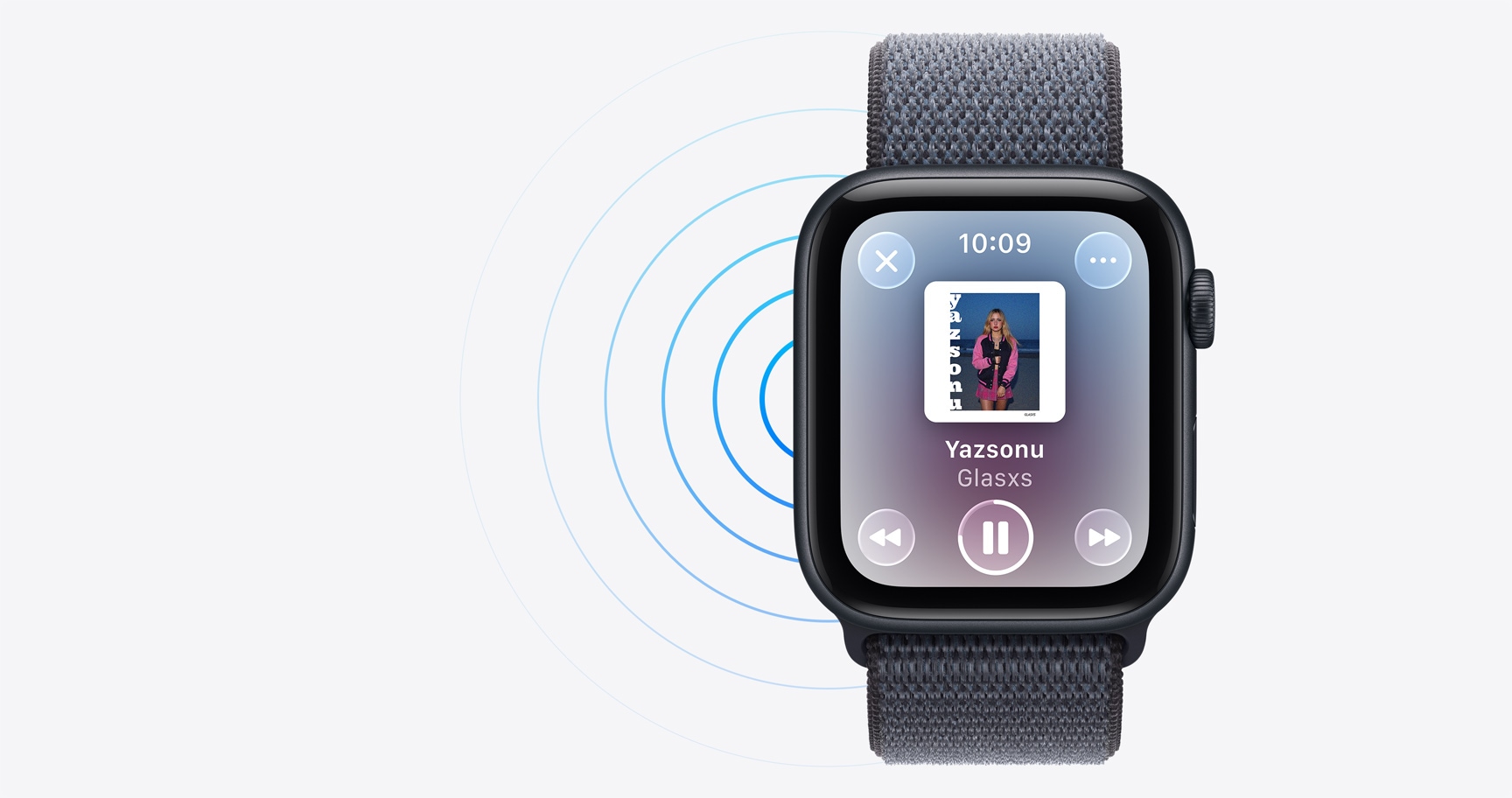 SE 3, AirPods’unuza kusursuz bir şekilde bağlanıyor. Bu sayede ellerinizi kullanmadan müzik, sesli kitap ve podcast dinleyebiliyorsunuz.6 Üstelik AirPods’unuz yanınızda olmadığında içerikleri saatinizin hoparlöründen çalabiliyorsunuz.