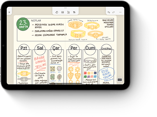 Apple Pencil Pro ile çift dokunuş özelliğini kullanarak kalem ve silgi gibi araçlar arasında hızla geçiş yapabiliyorsunuz.