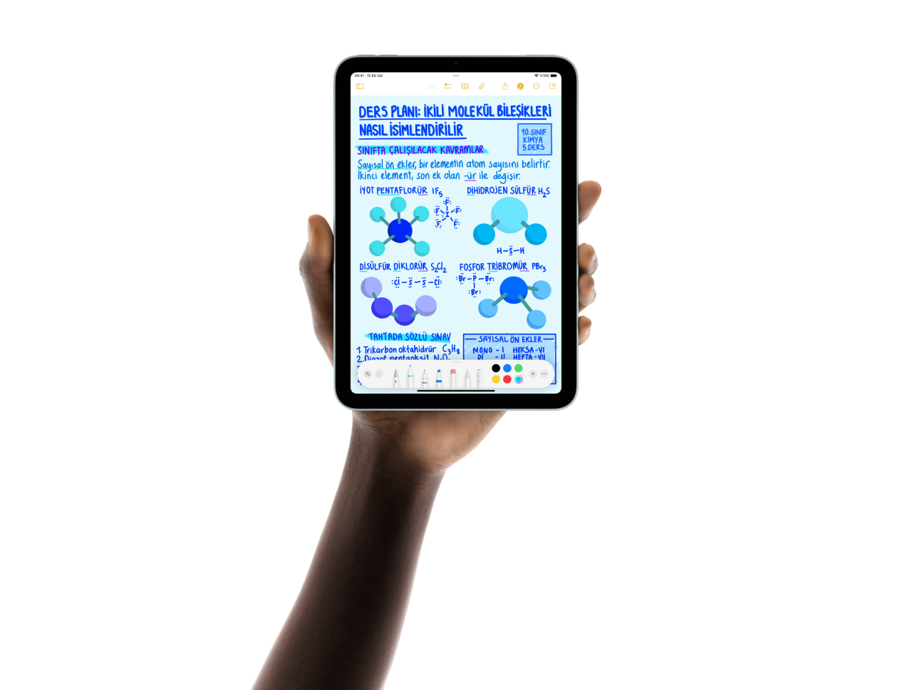 iPadOS sayesinde iPad mini daha da çok yönlü hale geliyor. Ana Ekran’ınızı kişiselleştirebiliyor, Akıllı Yazı özelliğiyle el yazınızı düzeltebiliyor ve Apple Pencil’ı kullanarak Matematik Notları’nda matematiksel ifadeleri değerlendirip grafikler hazırlayabiliyorsunuz.