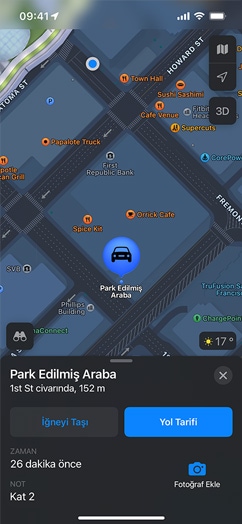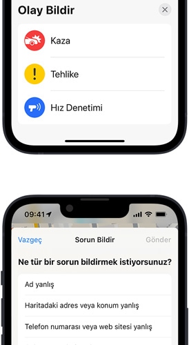 • Harita, verilerinizi Apple Hesabı’nızla ilişkilendirmiyor. Ve Apple, konum geçmişinizin kaydını tutmuyor. Park ettiğiniz arabanın konumunu belirleme gibi kişiselleştirilmiş birçok özellik doğrudan aygıtınızda oluşturuluyor. Ayrıca rotalar ve arama terimleri gibi navigasyonu iyileştirmek için kullanılan veriler de kimliğinizle ilişkilendirilmiyor. Aksine, bu bilgi sürekli değişen rastgele tanıtıcılar üzerine kuruluyor.