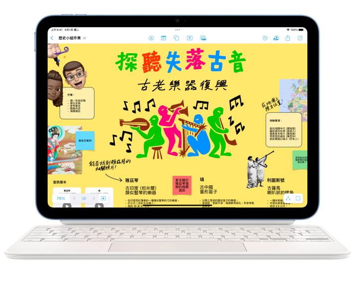有了飛快的 A16 晶片,工作起來比以往更輕鬆,大事小事,一部裝置全部做好。你可以寫筆記、傳訊息,還能順暢地多工處理,在多個 app 間來回切換。不論是製作簡報裡的圓餅圖,還是各種圓餅的食譜,都沒問題,iPad 的設計,就是為實現各式各樣的生產創作而生。