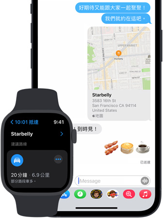 四處走踏時,你能在所有 Apple 裝置間盡享流暢、不間斷的體驗。Apple Watch 上的觸覺回饋會引導你朝正確的方向前進,走路時不必拿出 iPhone;Mac 上的「行事曆」提示會讓你知道何時該結束工作、出發前往目的地;只要開口說,HomePod 就會找到路線,並在你出門前傳送到你的 iPhone 上。「地圖」還會自動與 Siri、Spotlight、「訊息」和「天氣」同步,適時為你提供相關資訊。